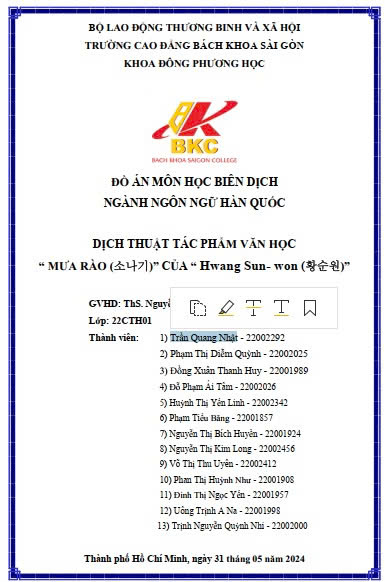 Dịch thuật tác phẩm văn học “ Mưa rào (소나기)” CỦA “...